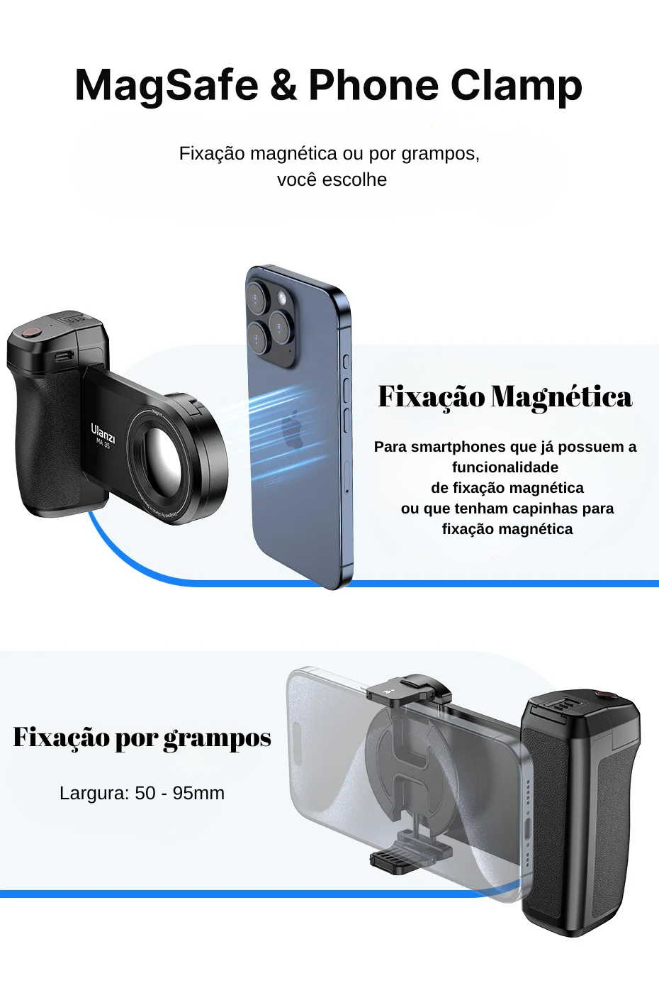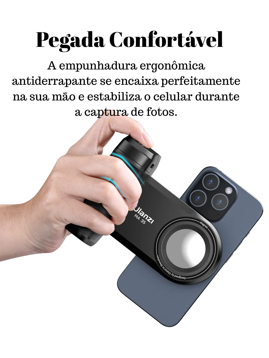 Com tecnologia MagSafe, o Ulanzi MA35 oferece um encaixe magnético firme e rápido, garantindo segurança total durante o uso. Basta aproximar o seu smartphone para que ele se fixe automaticamente, proporcionando estabilidade e conforto em qualquer posição.