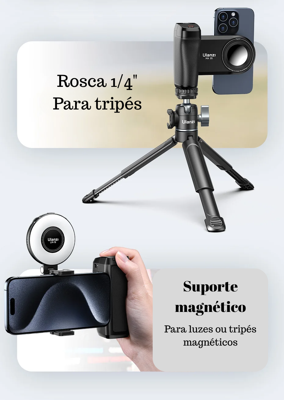 💬 Dica: use o Ulanzi MA35 com luz em conjunto com um tripé ou suporte de mesa para alcançar resultados ainda mais impressionantes!